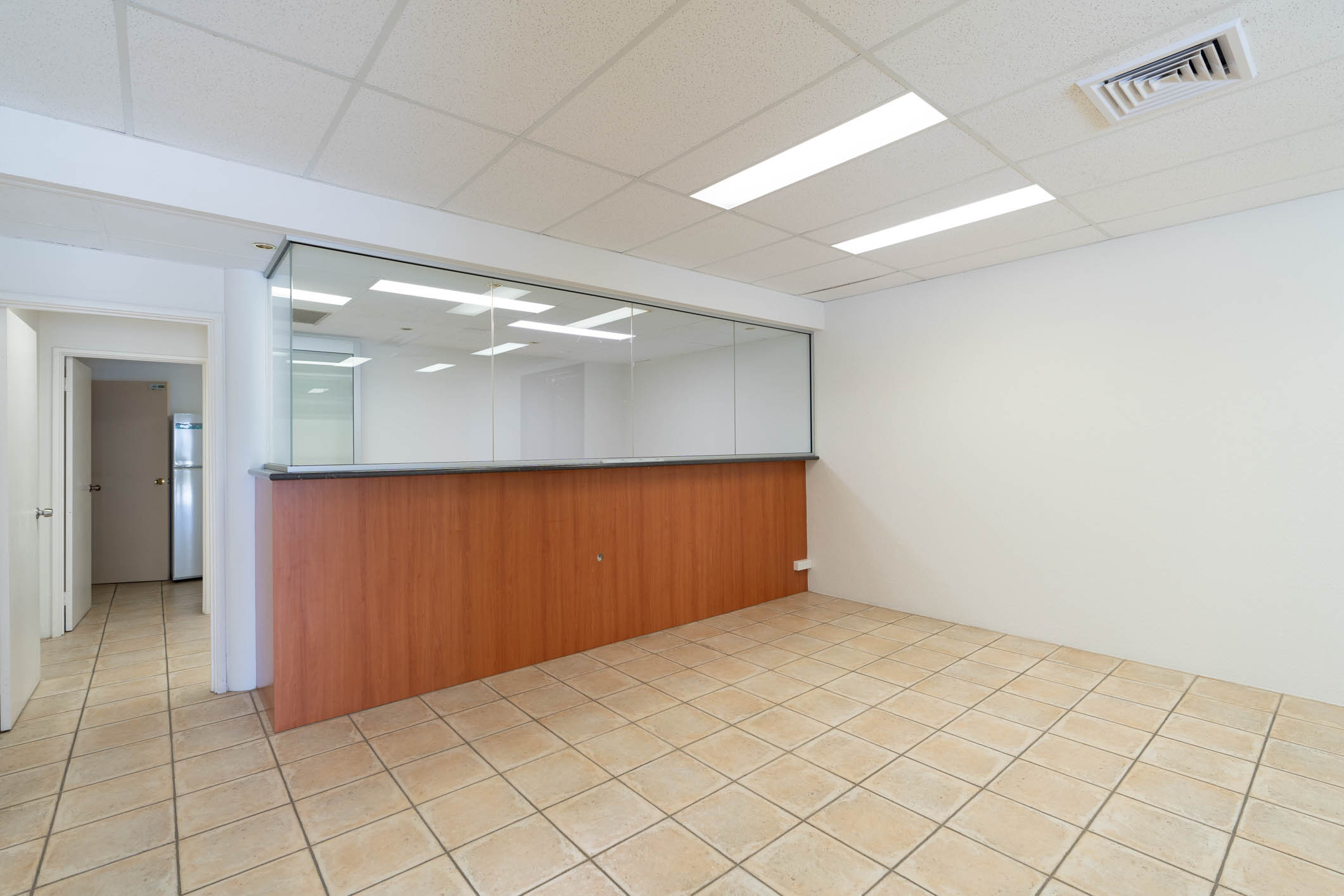 • Ground floor office/amenities (122sqm*): Tiled, reception area with some partitioned offices and open planned, suspended ceiling throughout, air-conditioned, NBN.