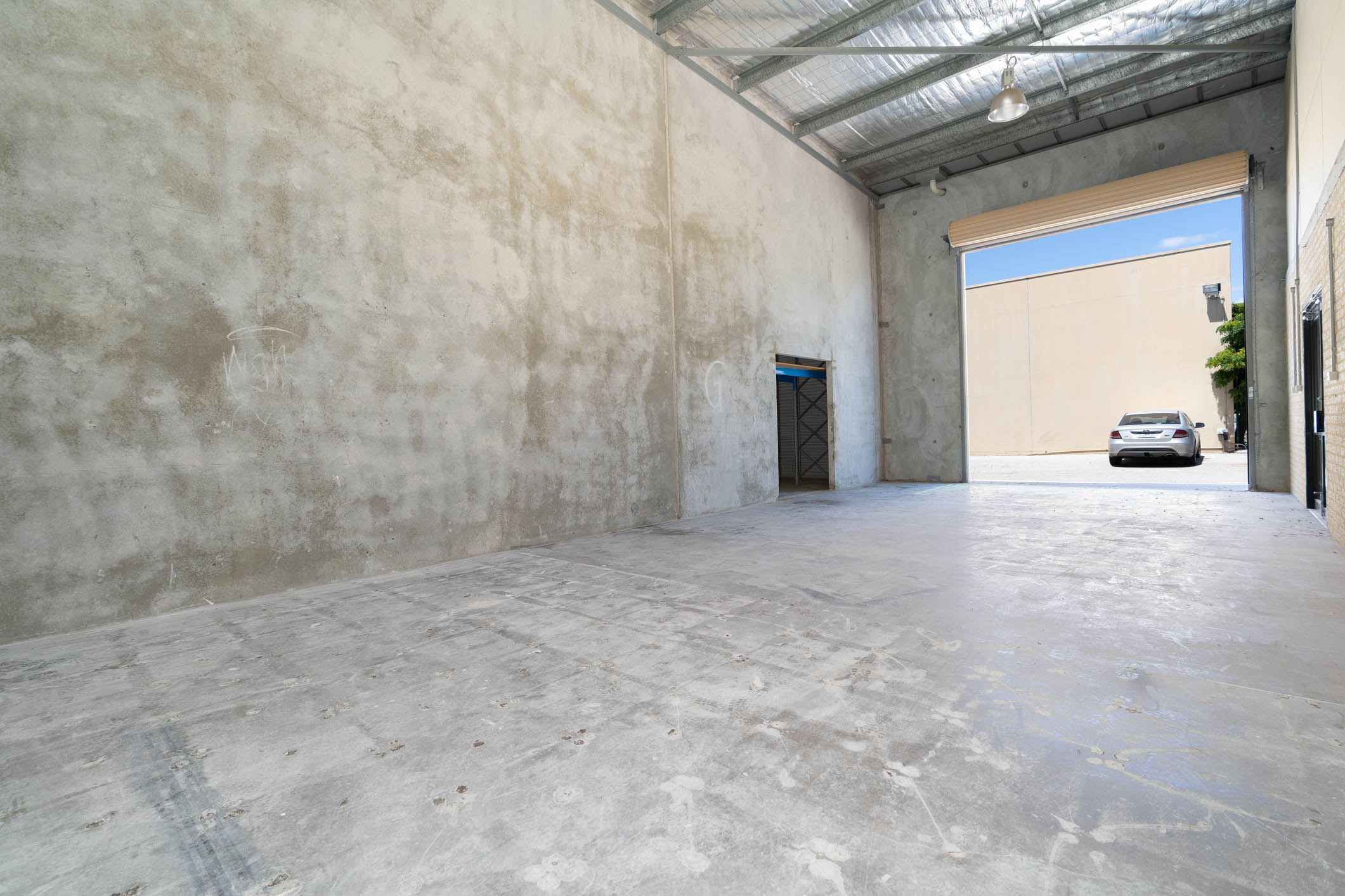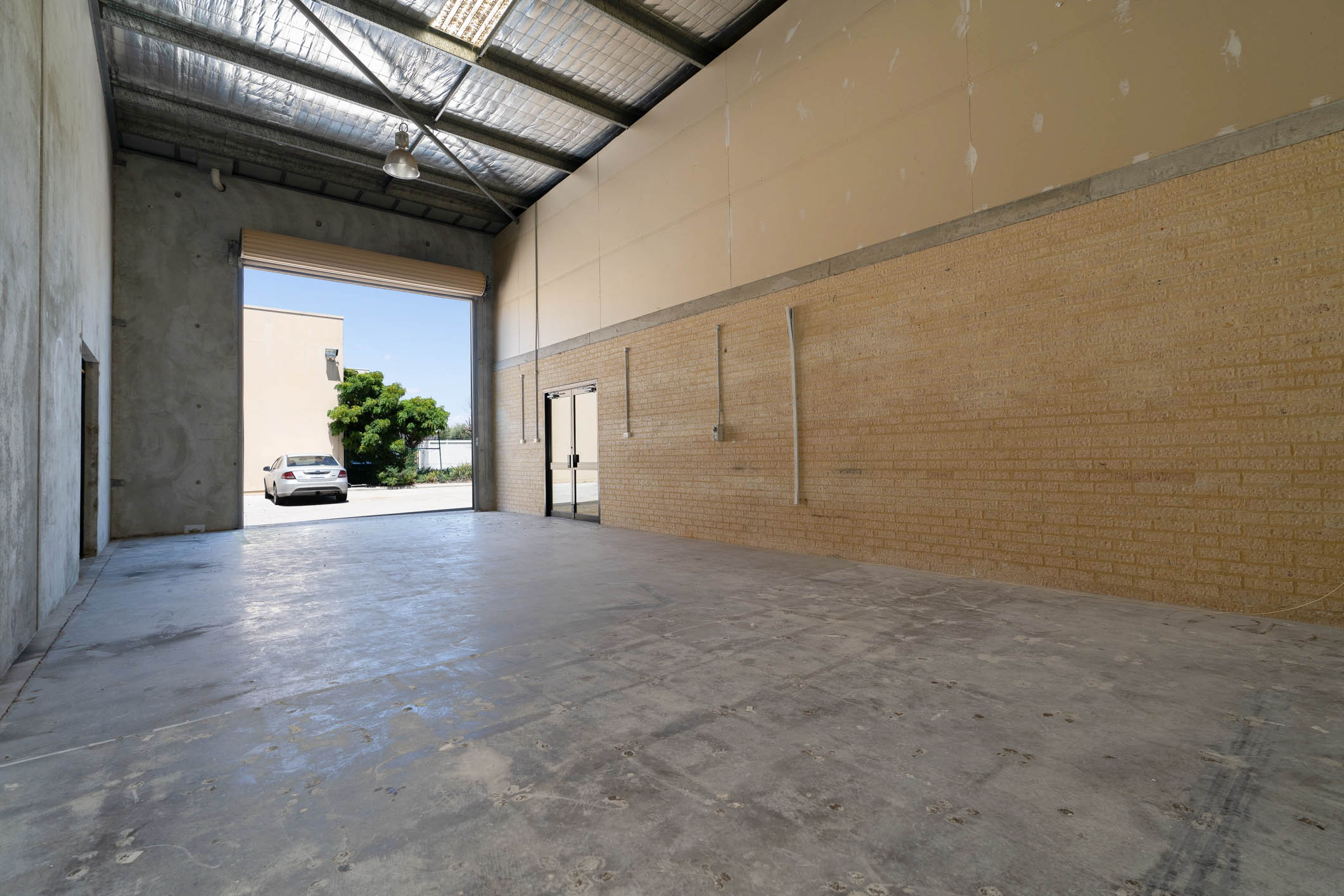 • Warehouse (80 sqm*): Roof height 6.8m, roller door (4.3mW x 4.5mH), hi bay lights, 20amp three phase point.