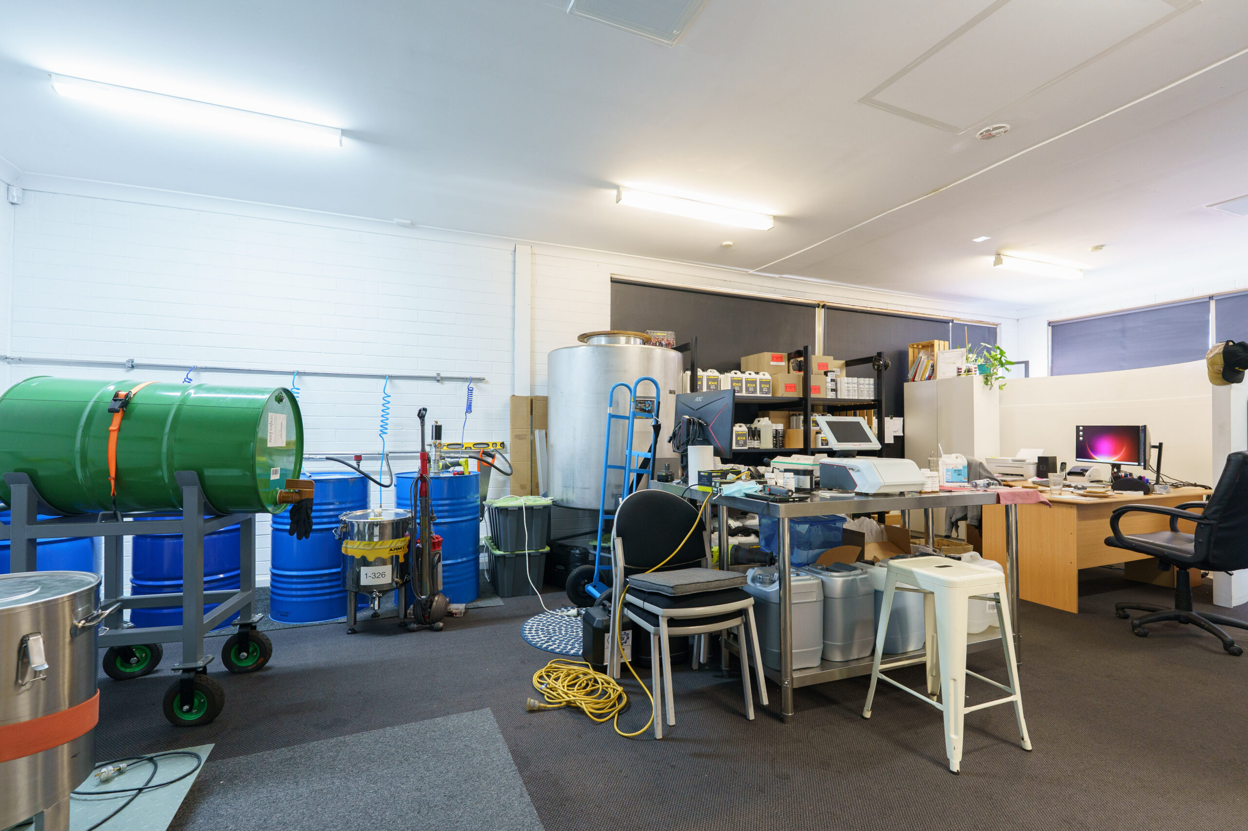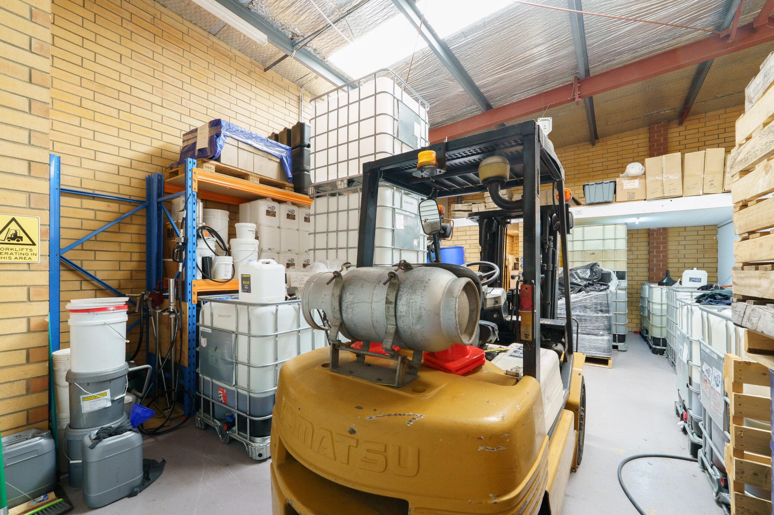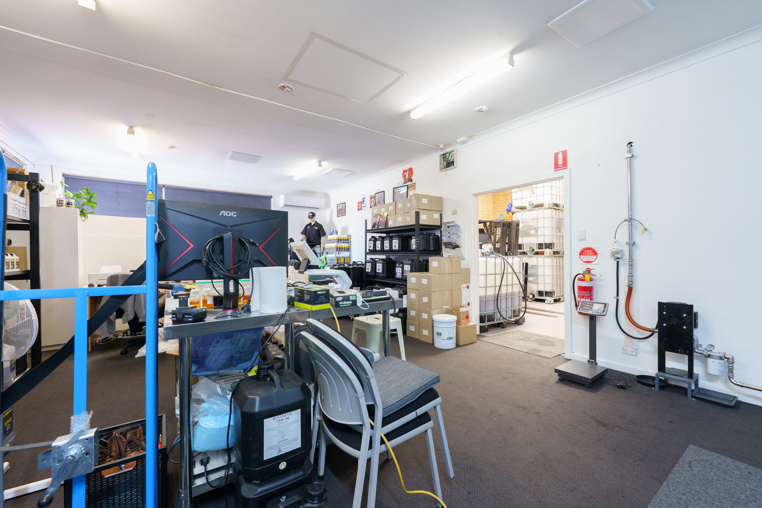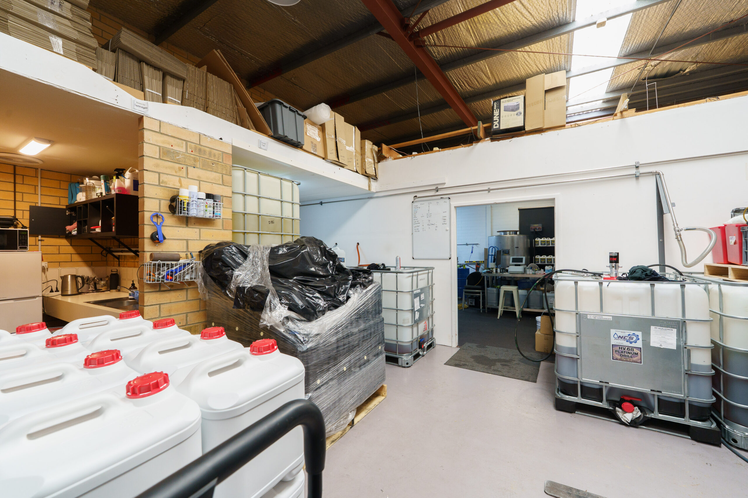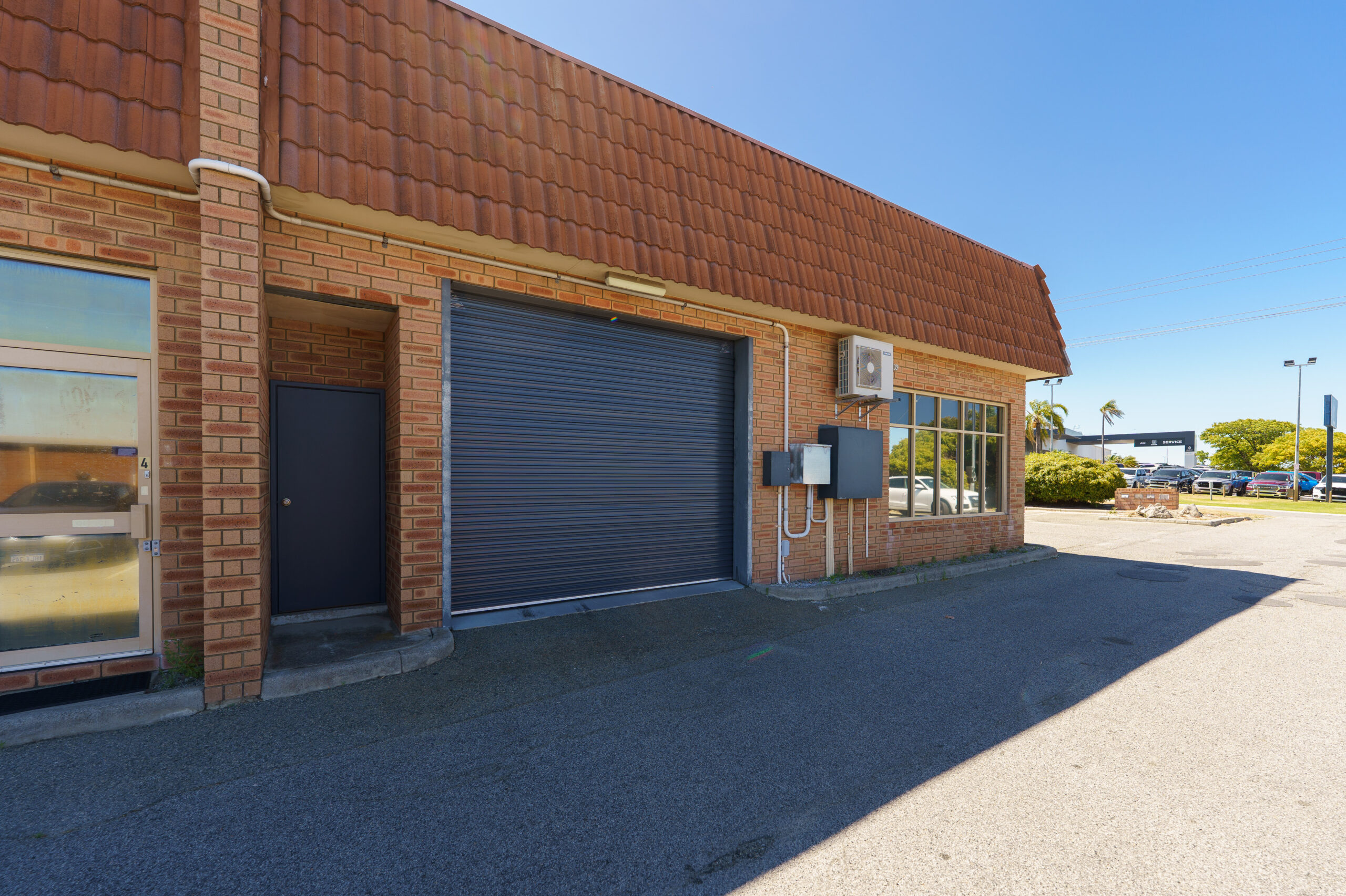 Warehouse: roof height up to 4.7m, roller door 3.4mW x 3mH, hi bay lights.