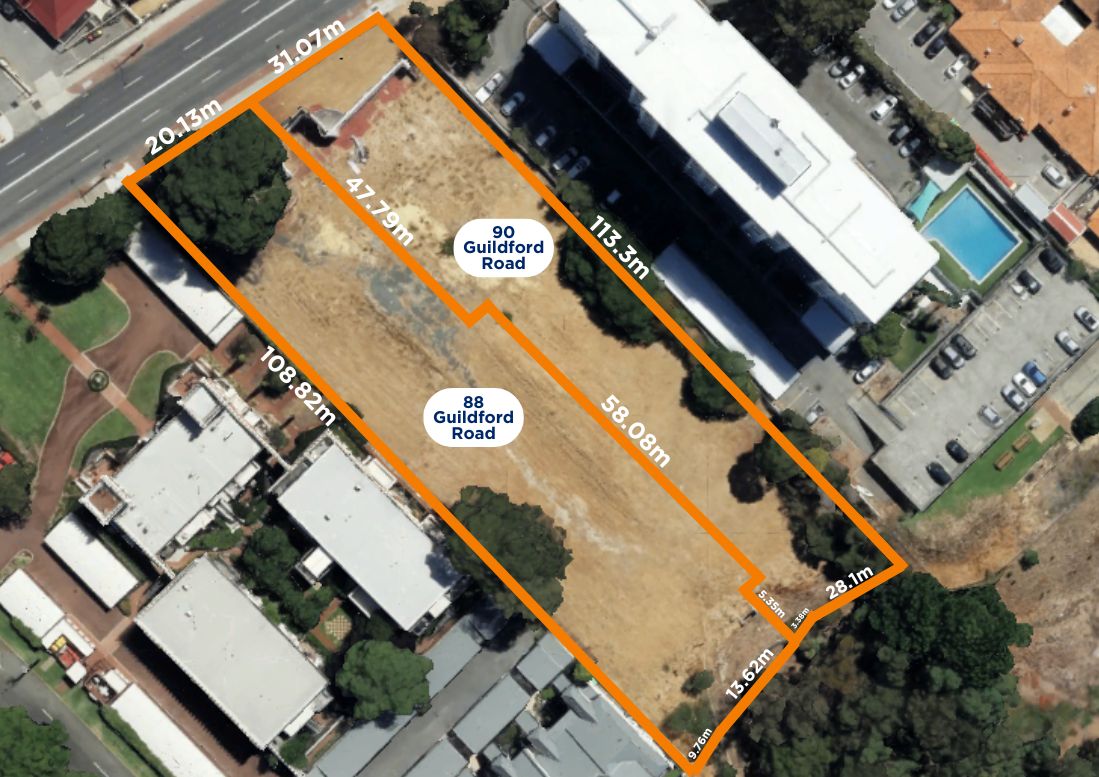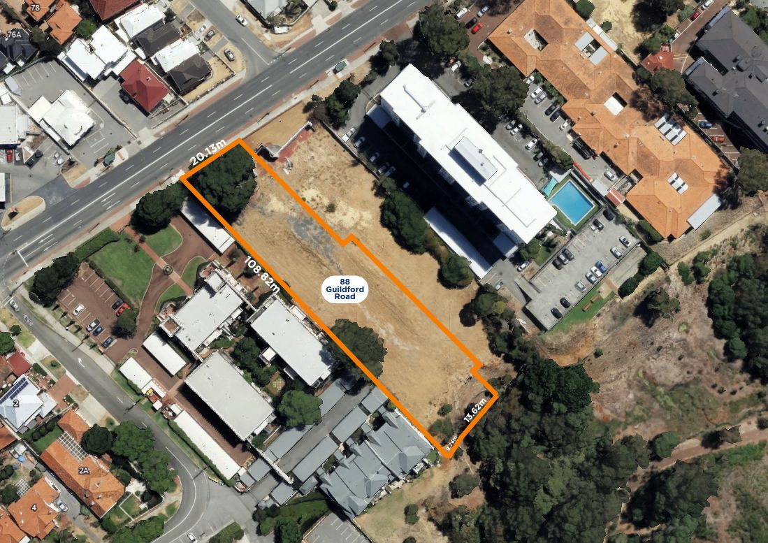 • Site frontage to Guildford Road of 51.20m, Rear boundary: 71.65m, North boundary: 113.30m, South boundary: 108.82m